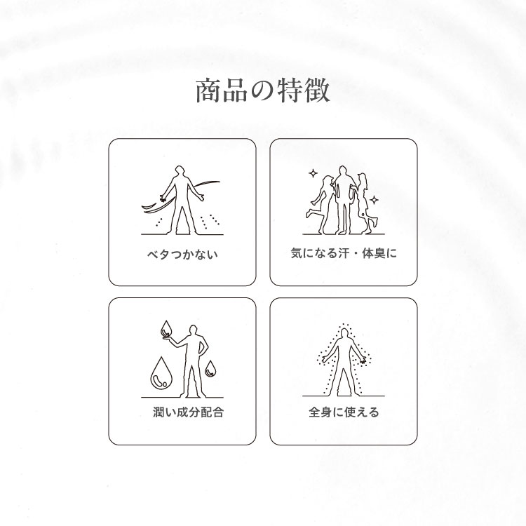 ラウンド後のほてった身体を爽快クールダウン。パウダーインで汗のベタつきもさっぱりさらさらに。手に適量とり、肌におしつけるようになじませてください。