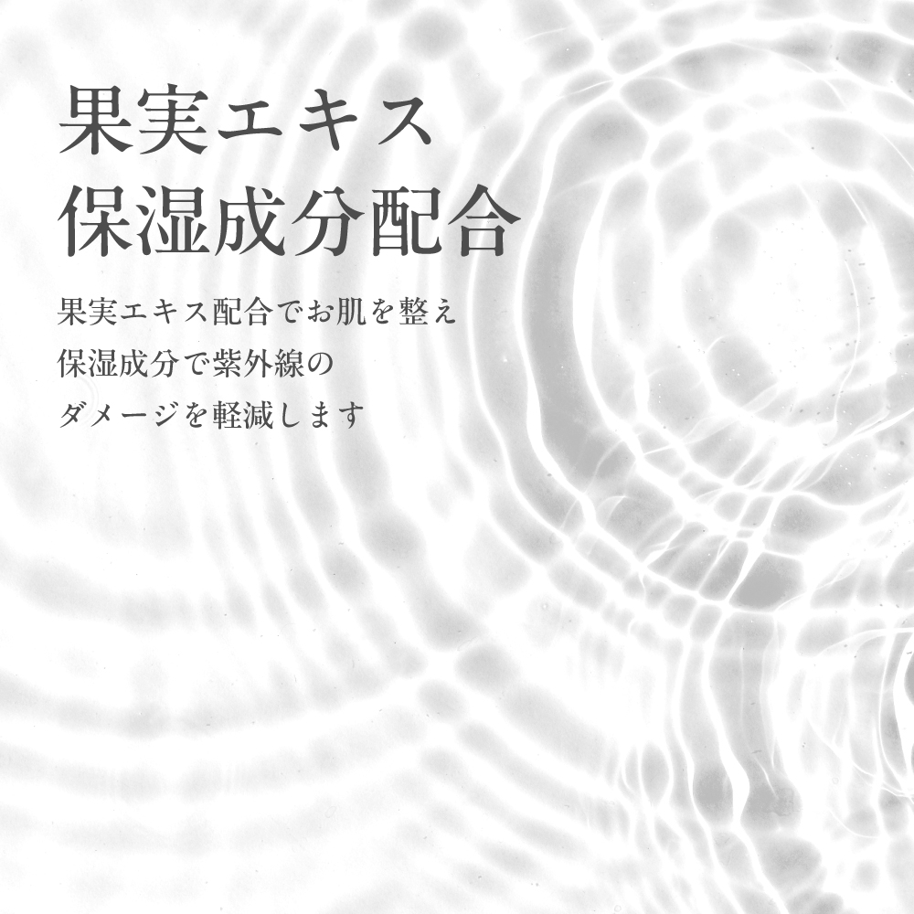 国内最高基準のSPF50+、PA++++で防御力はもちろんのこと、ほんのり感じるクール感が気持ちよくお肌をつつみこみ、果実エキス配合でお肌を整え、保湿成分配合でハリツヤを与えます。